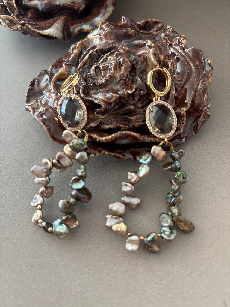 These exquisite earrings showcase baroque pearls paired with brilliant cubic zirconia, set in gold-filled sterling silver. A perfect balance of organic elegance and modern sophistication — designed to illuminate any look with subtle glamour.