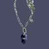 A handcrafted gold link chain featuring a natural amethyst Hamsa pendant — symbolizing protection, intuition, and inner balance.