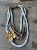 Golden Blossom Multi-Strand Statement Necklace – White Textile & Gold Flower Pendant
