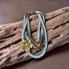 A bold yet elegant statement necklace combining soft textile braids, gold chains and a sculptural flower pendant. A wearable art piece designed to elevate any outfit instantly.