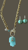 The pendant is suspended from a bold 24K gold-plated chain, enriched with delicate charms: